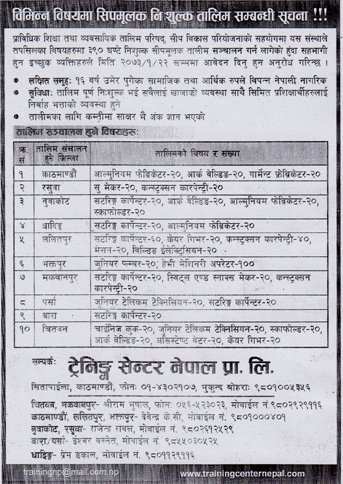 Fourth Cycle training of Skills Development Project in Kathmandu, Bhaktapur, Lalitpur, Chitwan, Makwanpur, Dhading, Nuwakot, Rasuwa, Bara and Parsa districts is being started from May 2, 2015